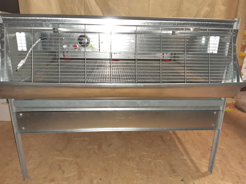 Metallist. Söödaküna ja joogisüsteem komplektis. Sõnnik koguneb tühjendatavale sõnnikualusele.