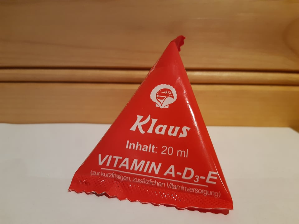 Toitmissoovitus: Suurenenud stressi korral soovitame 5 ml (ca 1 tl) manustada vitamiini A-D3-E 1 liitrile veele või 1 kg söödale.